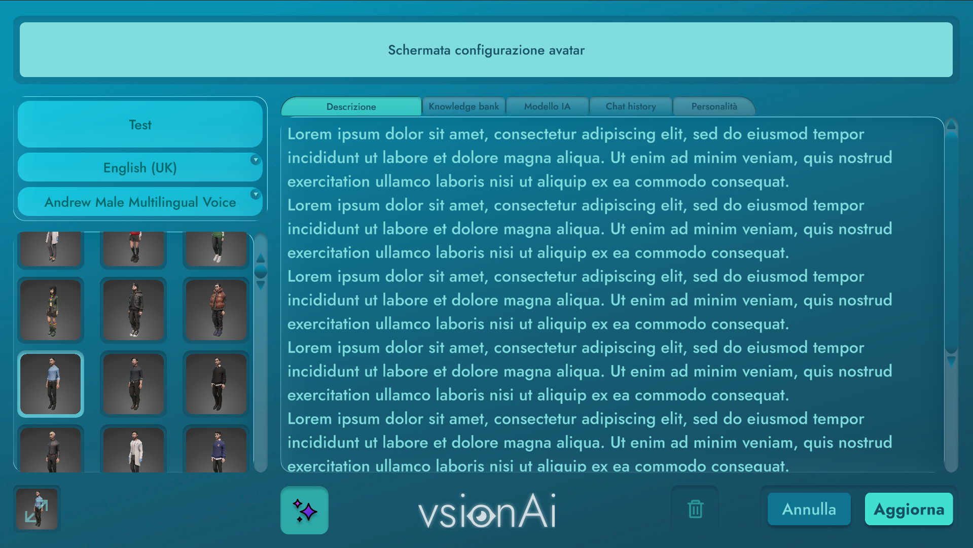 - VsionAI: during the last year at Dotslot, I designed and developed VsionAI. This new app allowed the user to show to the previously mentioned professional AI characters the video stream from the device’s webcam/camera, aiding the user in real laboratorial activities.