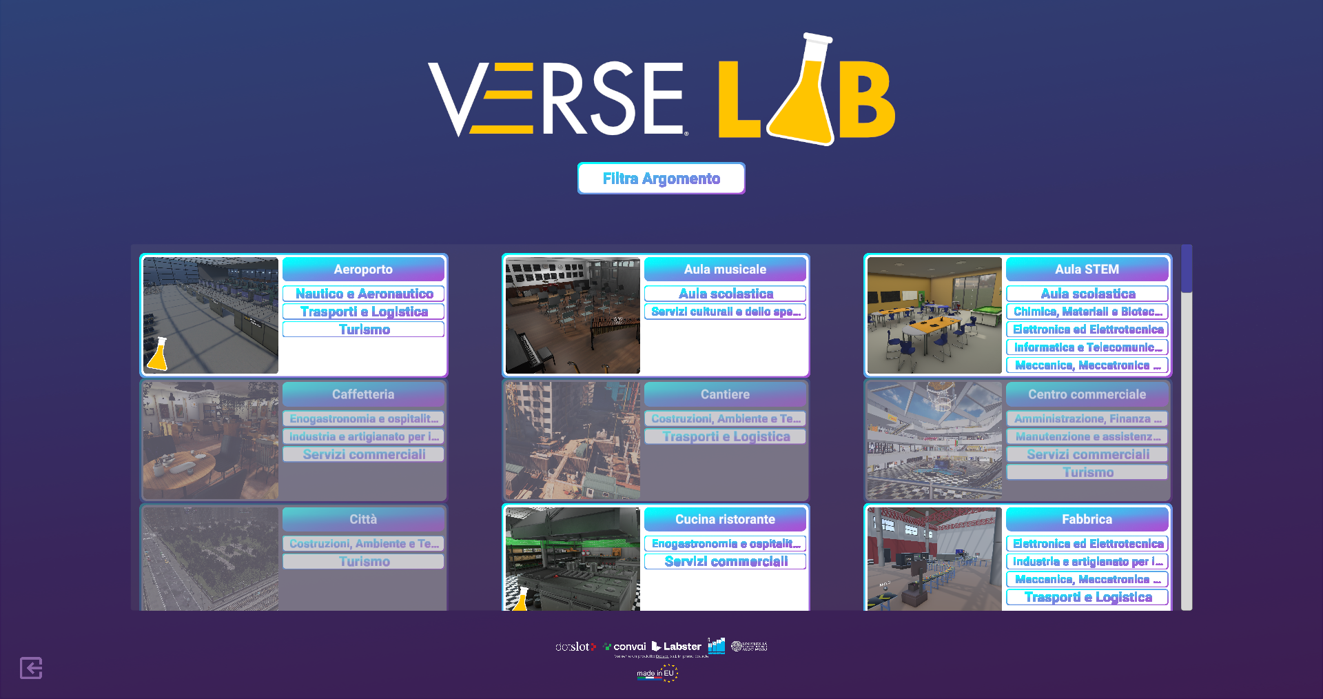 - VerseLab: following the development of Verse’s new functions, I started working on VerseLab, which was a version of the platform oriented for professionalizing highschool students. It contained a catalogue of 3D virtual spaces where the user could interact with the environment and with other professional AI characters.